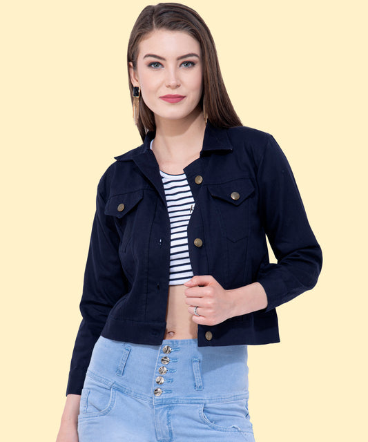 Effortless Chic: Women’s Cropped Navy-Blue Buttoned JacketRegular price Rs. 1,099.00Regular priceUnit price / perRs. 1,999.00Sale price Rs. 1,099.00Sale