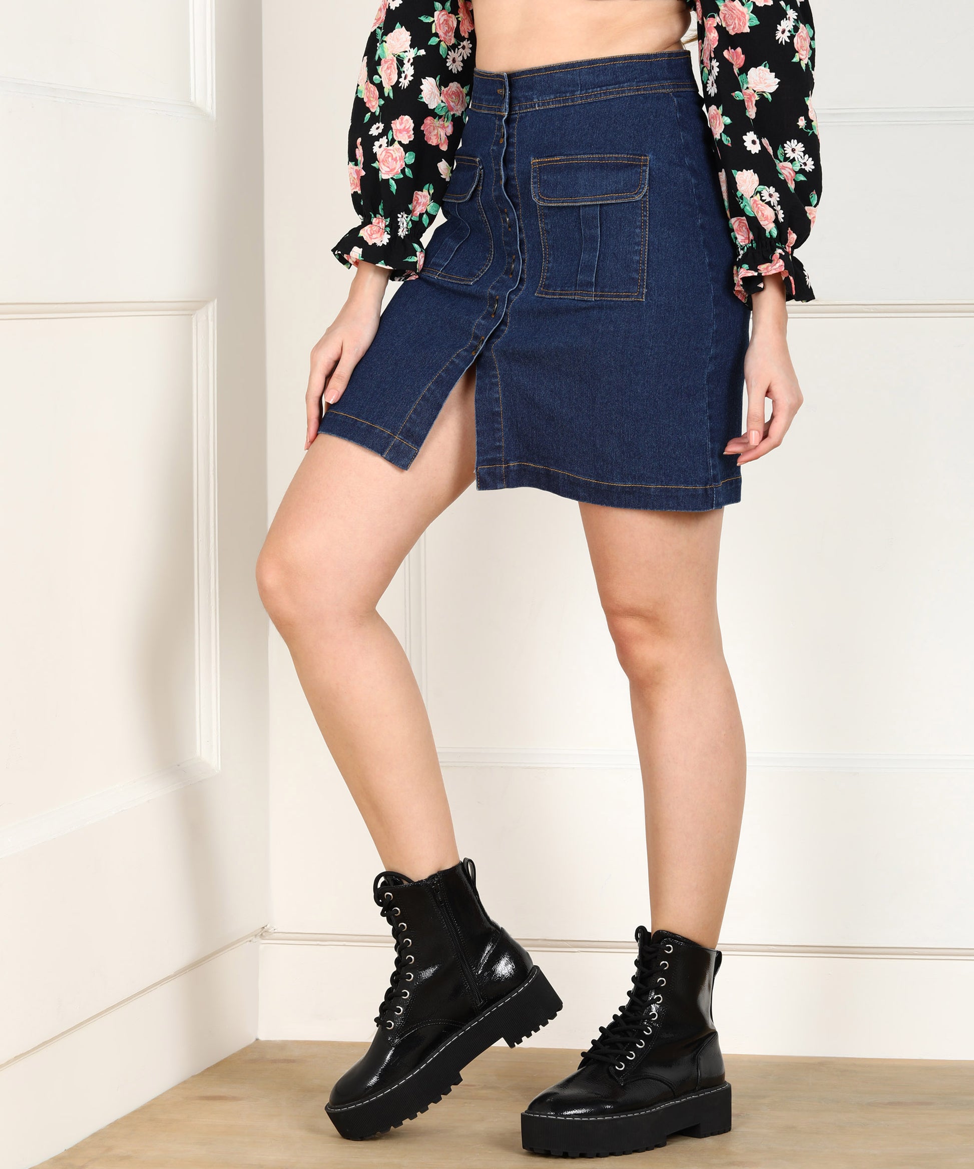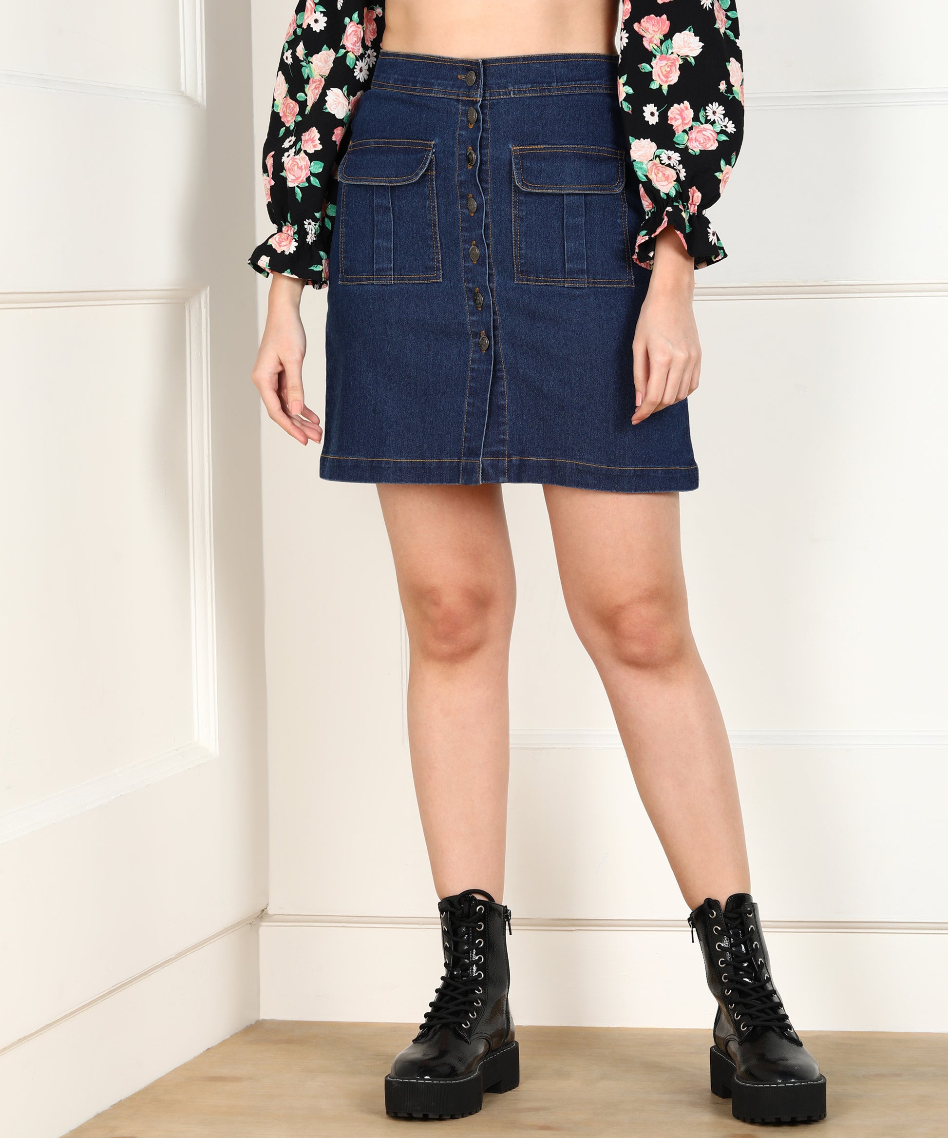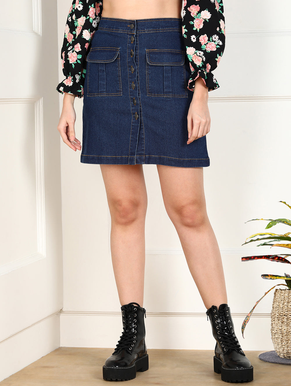 This skirt transitions seamlessly from daytime casual to evening chic. The structured denim fabric ensures durability and long-lasting wear.Its mini length brings a playful and youthful charm.Style it with crop tops, shirts, or sweaters effortlessly.