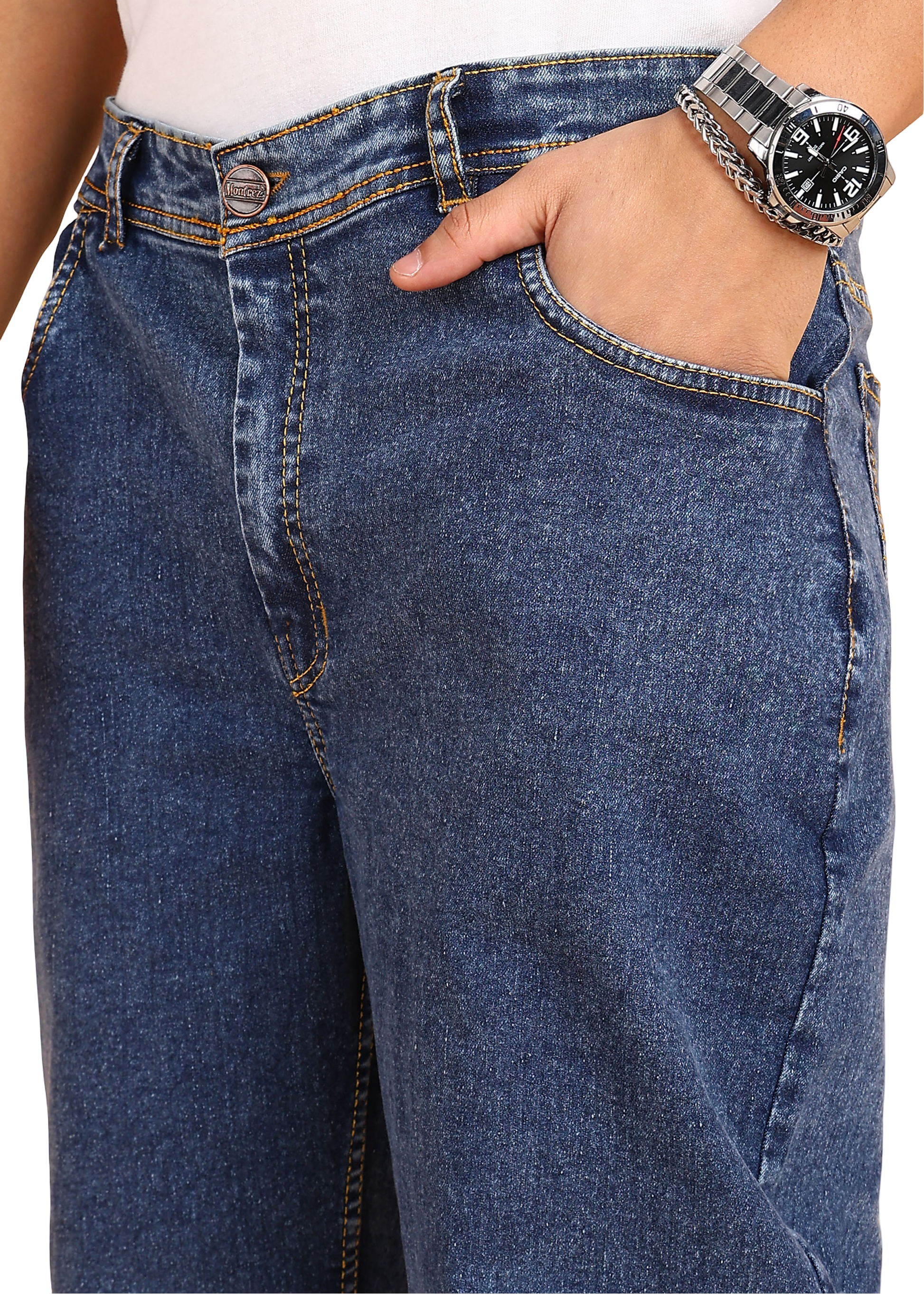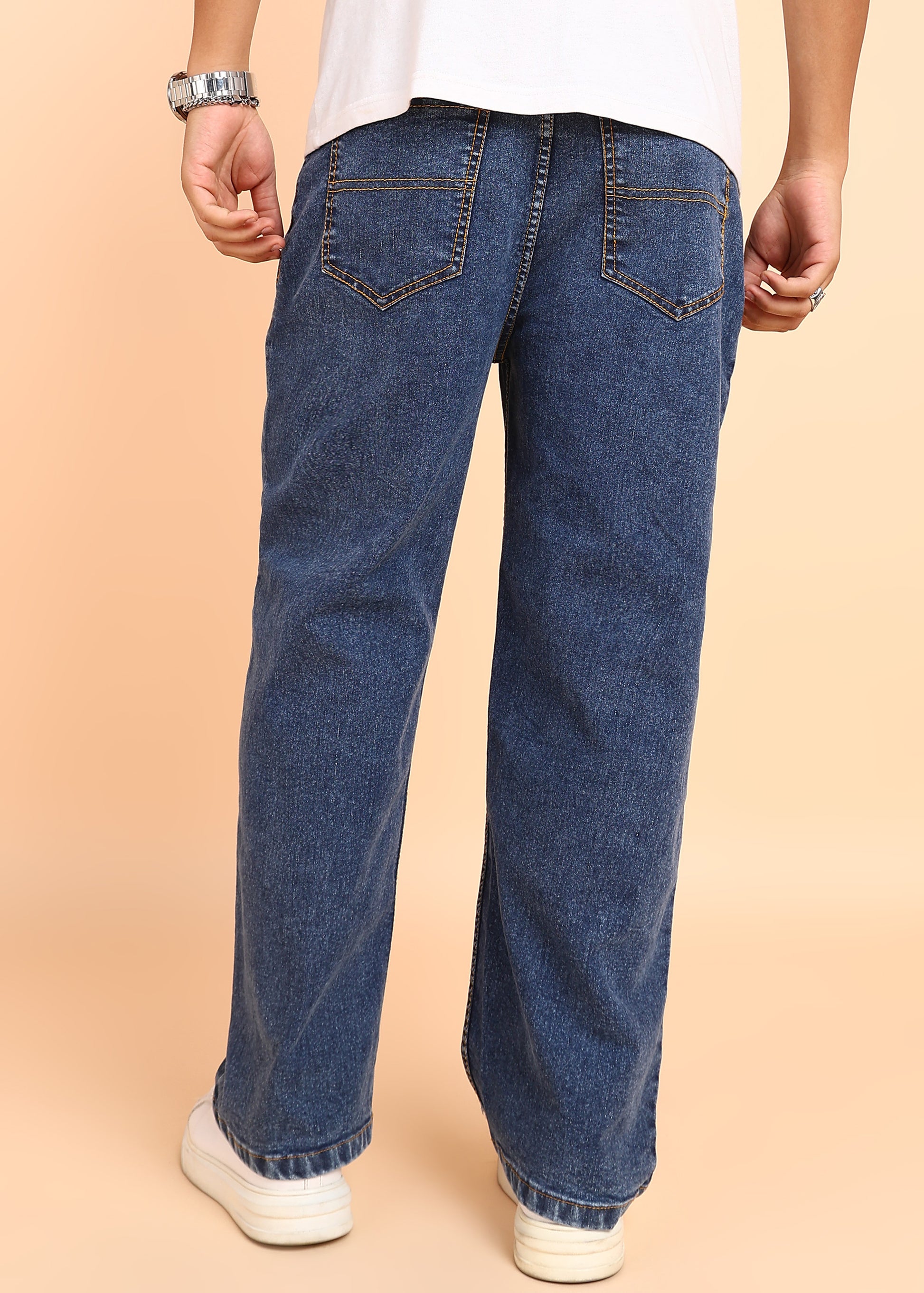 These premium dark blue jeans redefine casual wear with their durable construction and relaxed design. The straight fit ensures unrestricted movement while maintaining a sharp appearance. A cloud wash finish gives them a touch of uniqueness that enhances any outfit. From coffee dates to casual Fridays, they fit every occasion seamlessly.