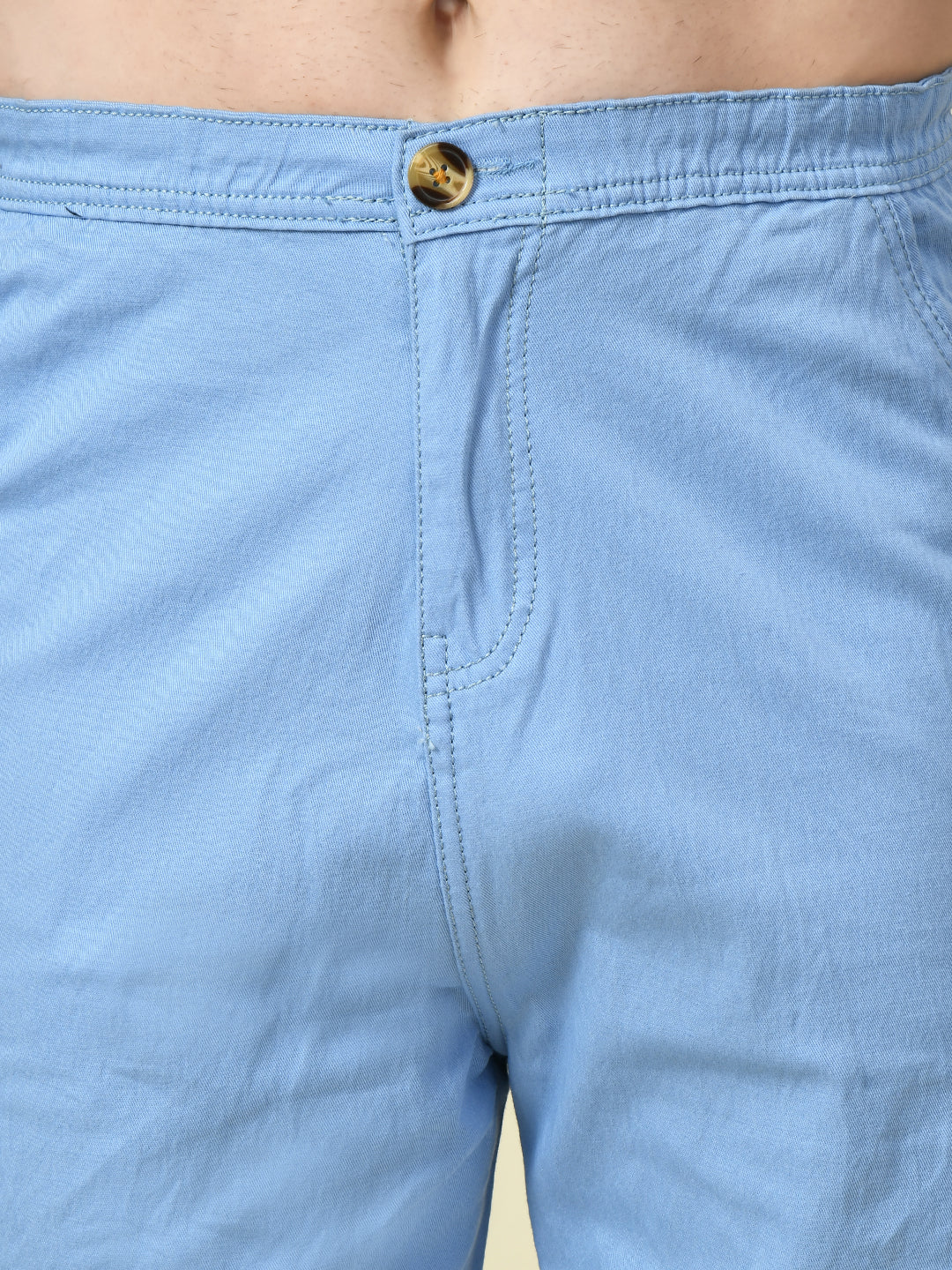 Elevate your casual collection with sky blue cargos. Elastic waistband ensures a perfect, comfortable fit. Lightweight fabric moves with you, all day long.A must-have for travel, leisure, and everyday wear.