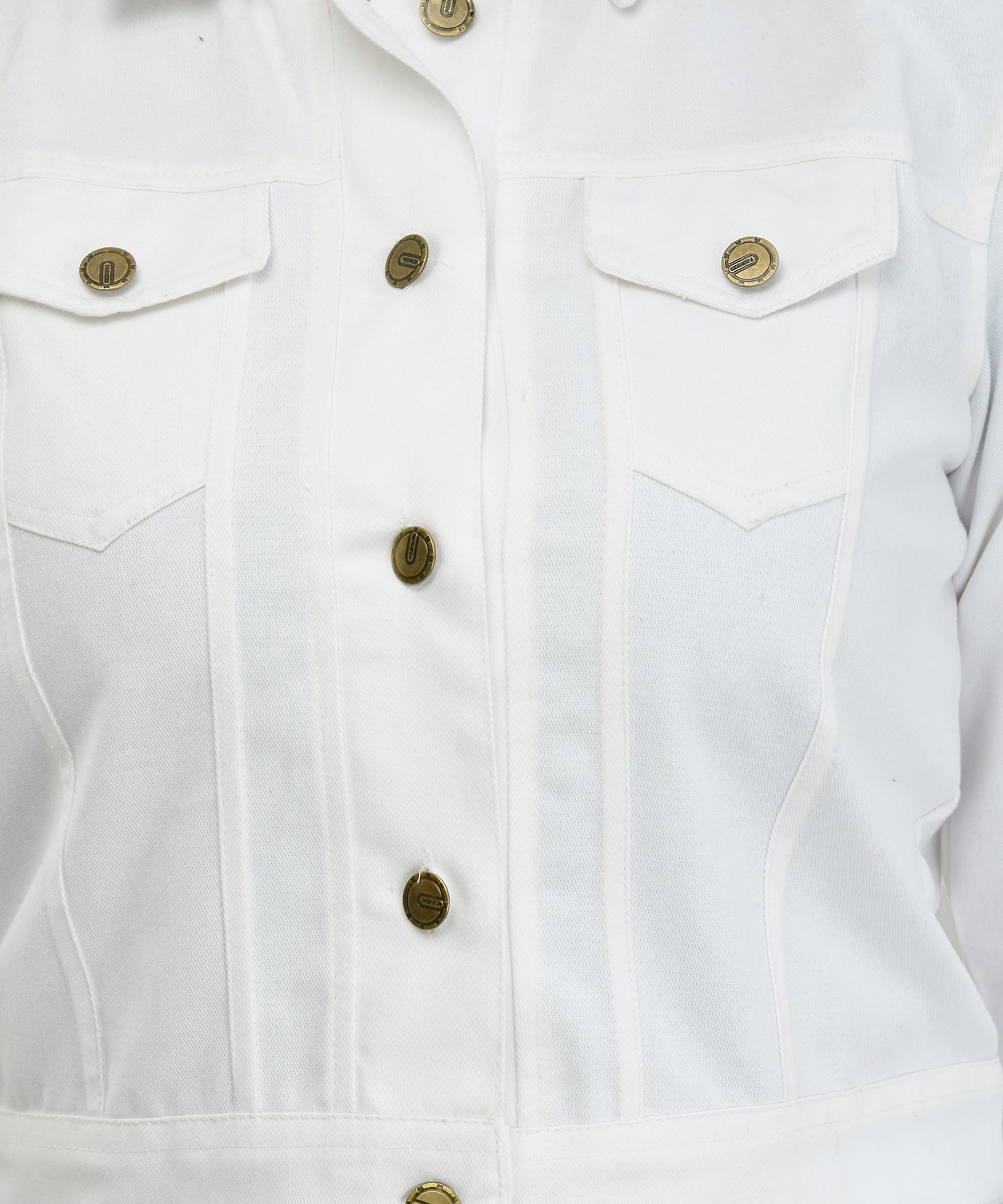Confidence shines brighter when paired with the purity of white. This buttoned jacket ensures you stand out without being loud. Its balance of sophistication and versatility makes it an instant classic. No wardrobe is truly complete without this fashion essential.