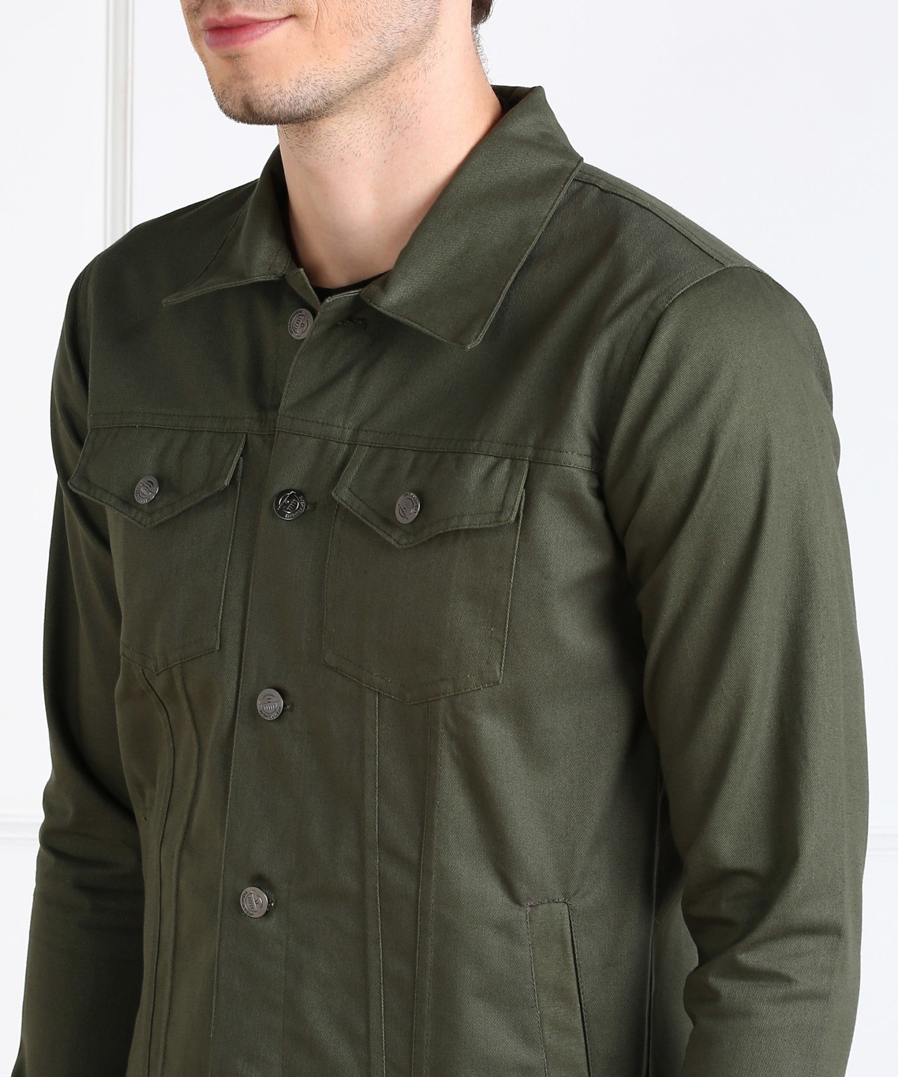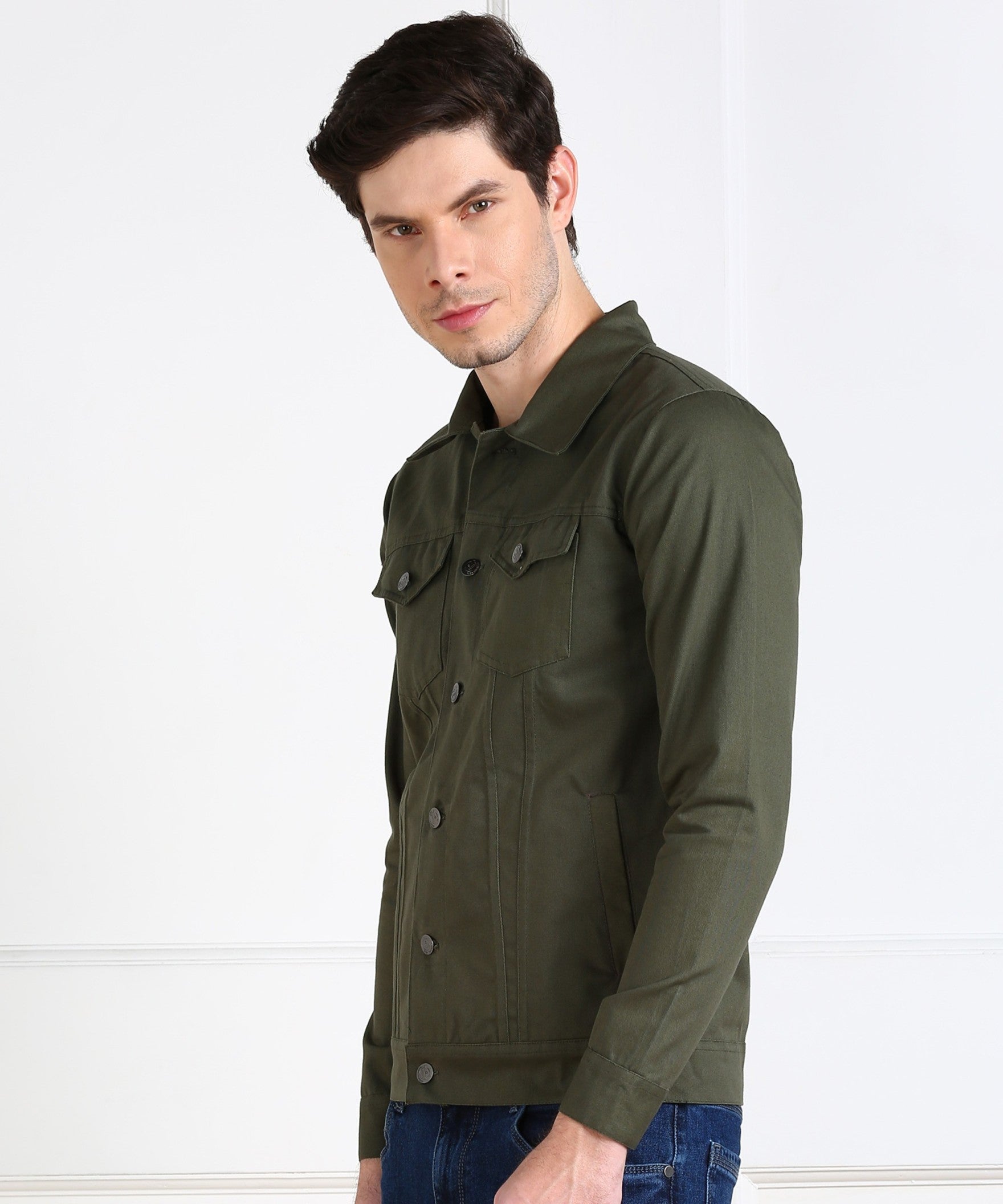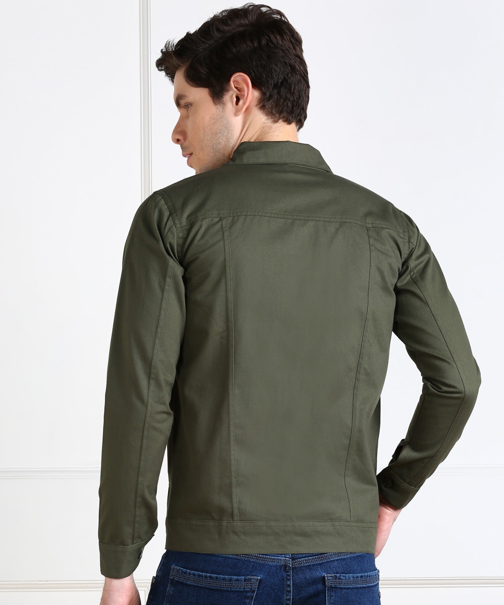 "Classic Olive Green Denim-Inspired Jacket"