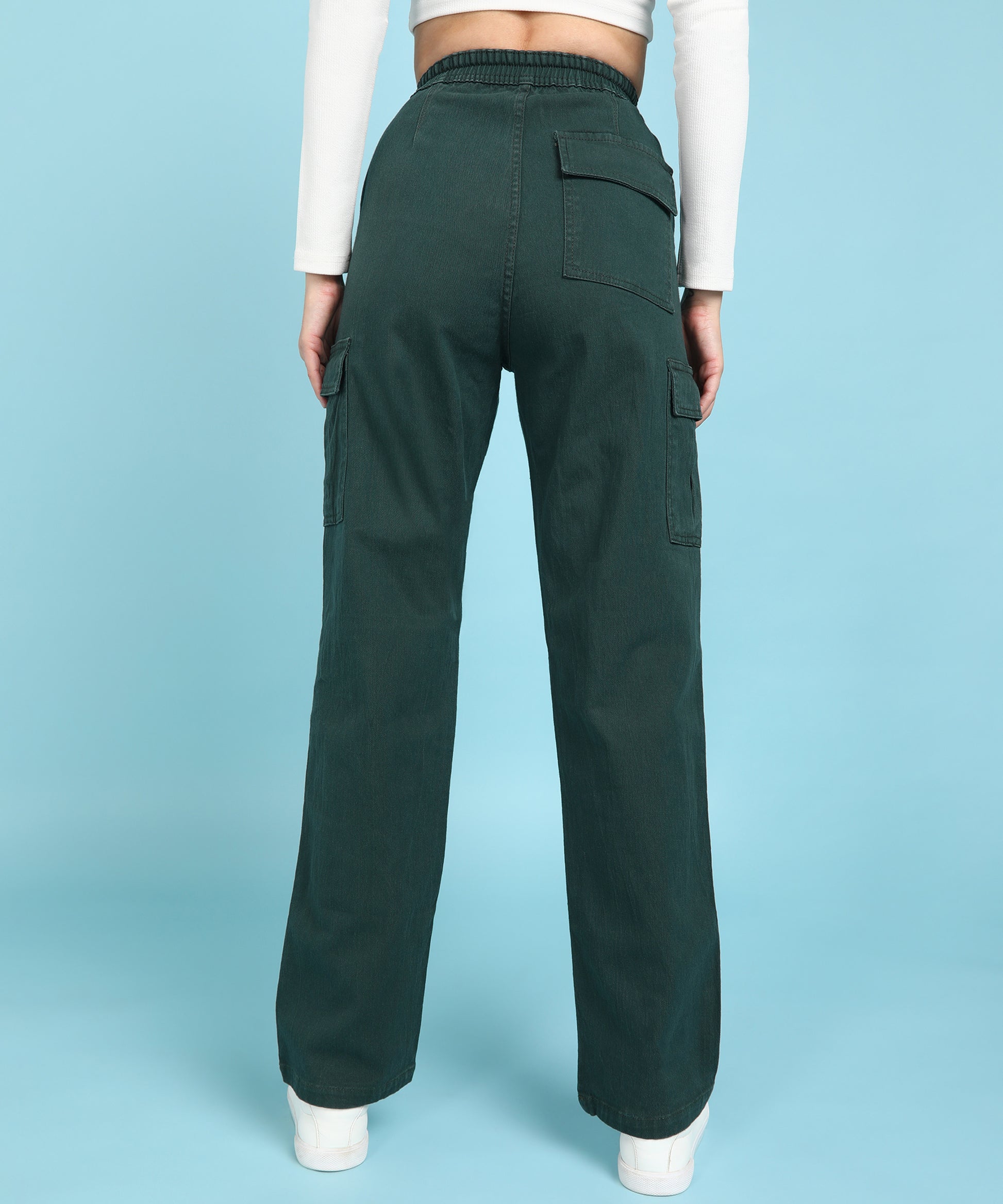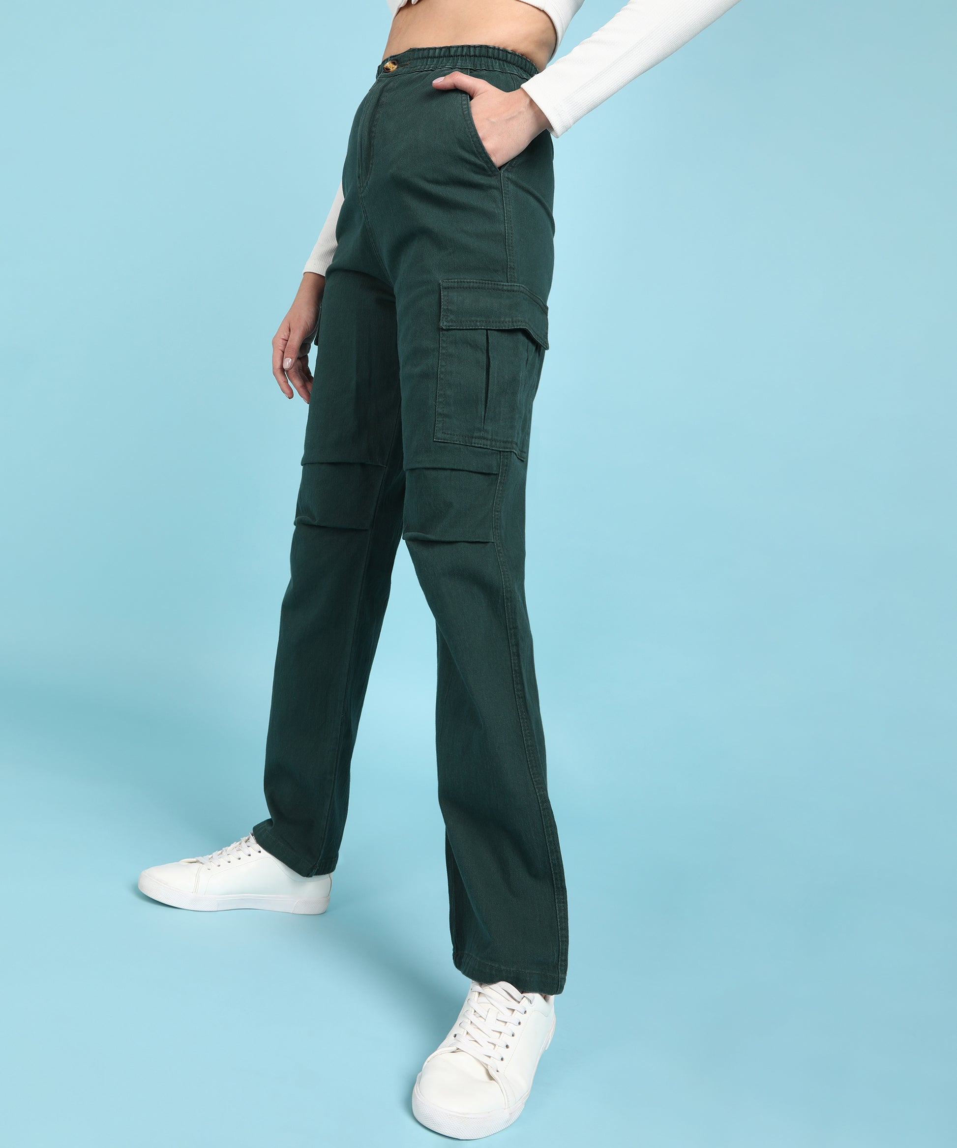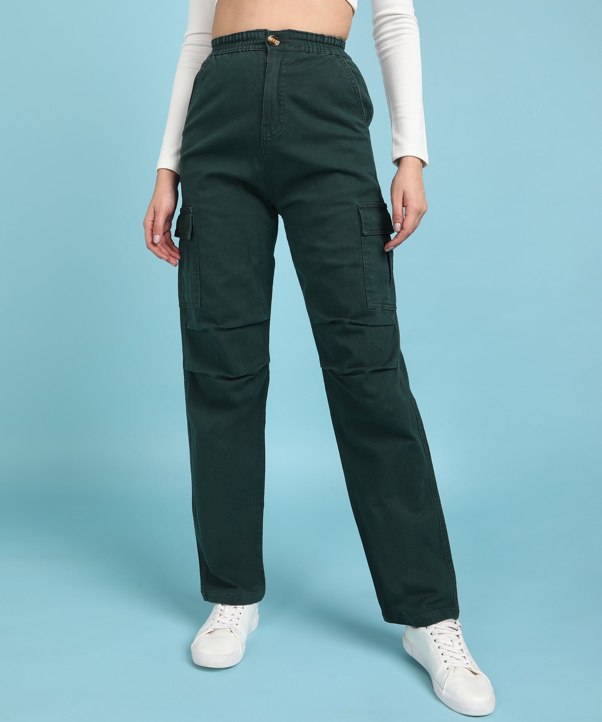 Classic Straight-Fit Cargo Trousers for Women – Bottle Green