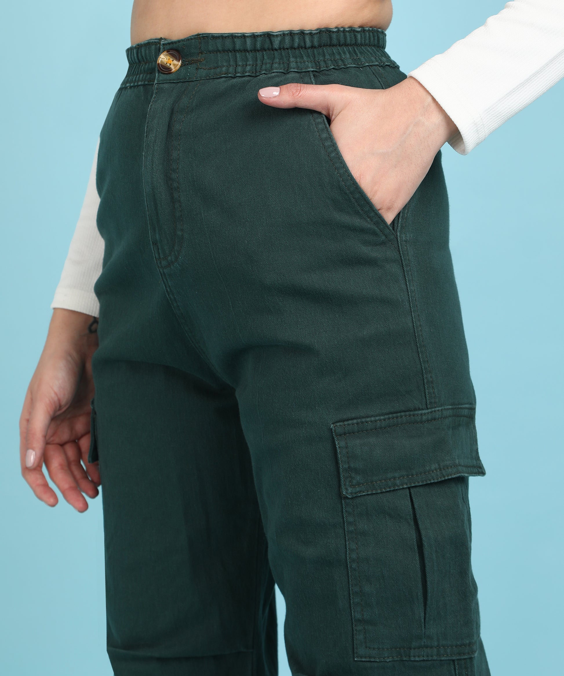 Discover the charm of utility fashion with these women’s cargo pants. The bottle green shade adds a refreshing twist to everyday styling. With a relaxed fit and durable fabric, these pants promise long-lasting wear. Pair them with sneakers or boots to make a bold fashion statement.