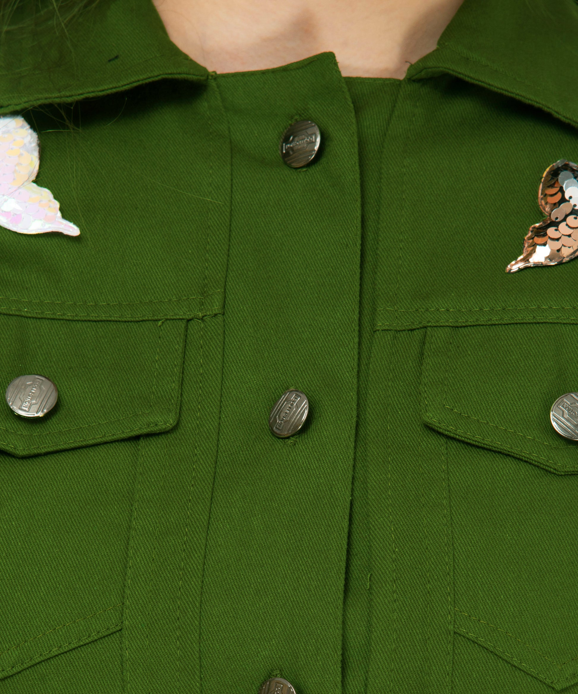 "Bring Nature to Fashion with a Butterfly-Embellished Green Jacket"
